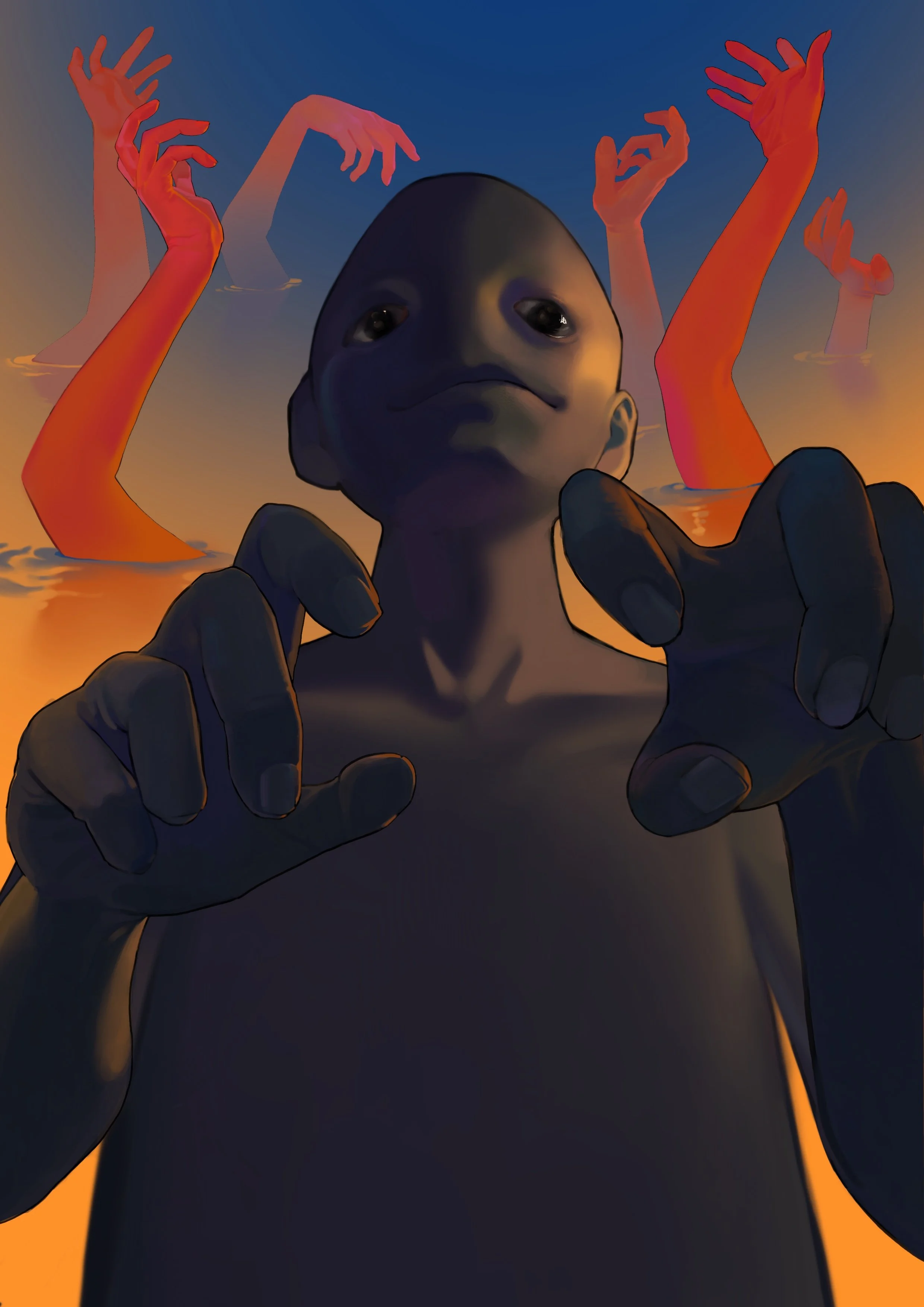 “UOZA” is an illustration series centered on Umibōzu, a sea monster from Japanese folklore said to capsize the boats of fishermen. I believe this myth reflects humanity’s deep respect and fear toward the vast power of the sea. This series consists of four illustrations, each set in a different era: Ancient Times, the Past Century, the Present, and the Future.